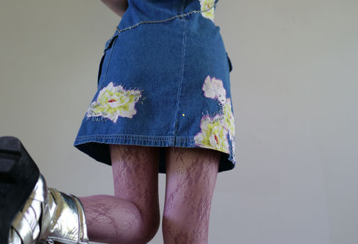 This year I explored femininity, commitment, growth, oppression, and expression, through different mediums. Claiming four thrifted dresses as my canvas, I collaged themes into the fabric. The collages consisted of spray paintings, embroidery, chains, and images. My journey began with a casual denim dress. I called her the fashionable baby. At that point, I was still unsure of what direction to take but, as the year progressed I was drawn to the “higher” side of fashion. Inspiration struck me through the designer Guo Pei who styled without fear. She went grand and I thought, so can I. I continued restyling each dress with my own brand, but adding larger constructions- laced wings, a tulle cape. I had to learn new skills for each idea and this was gritting at times yet satisfying in the end. My three other dresses had grown up.